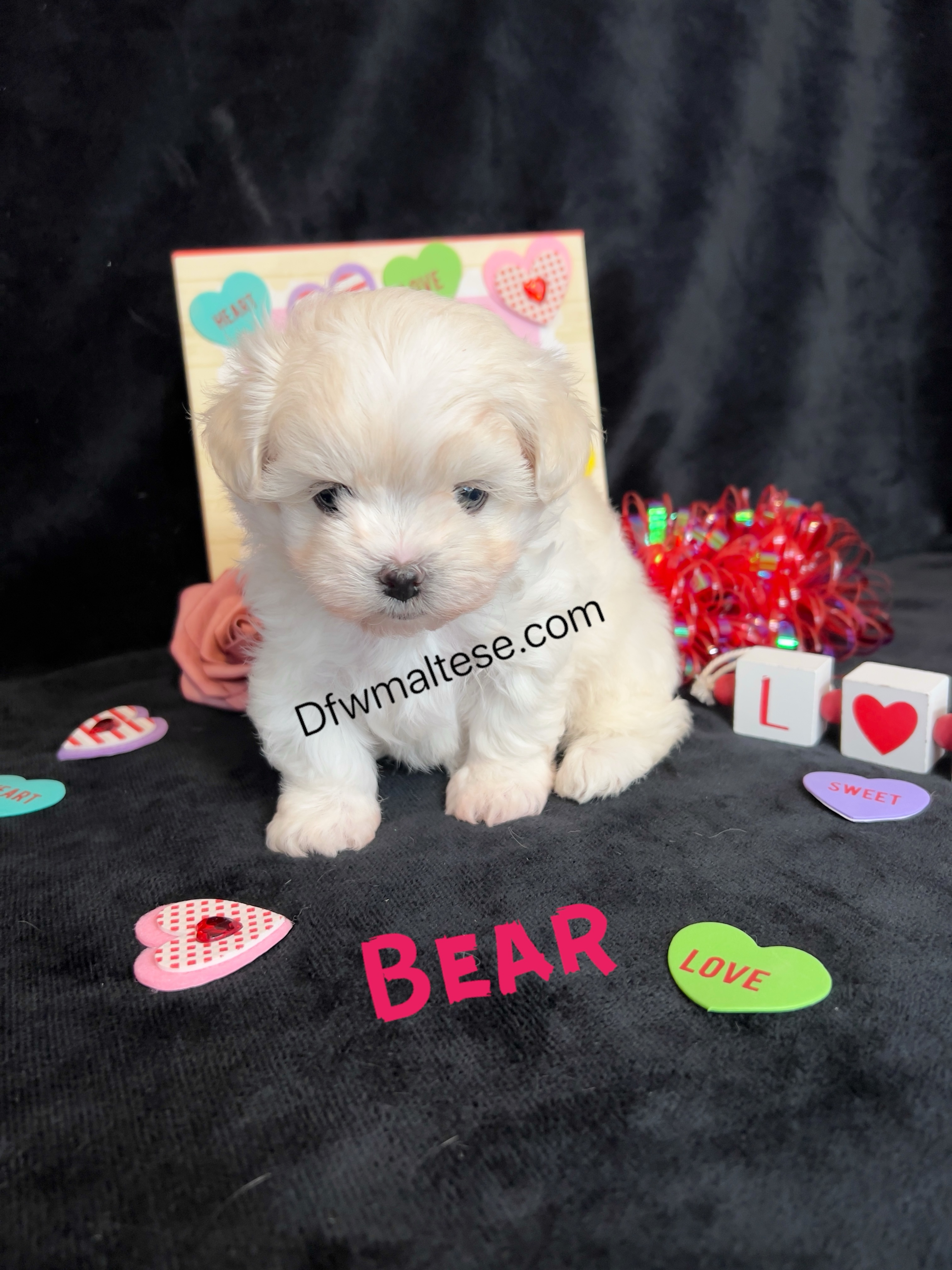 Bear male Maltese, born 12/13/25,ACA registered and charting to be around 6 to 7lbs grown. Korean bloodline Ready to go with a loving sweet personality around 2/7 to 2/14