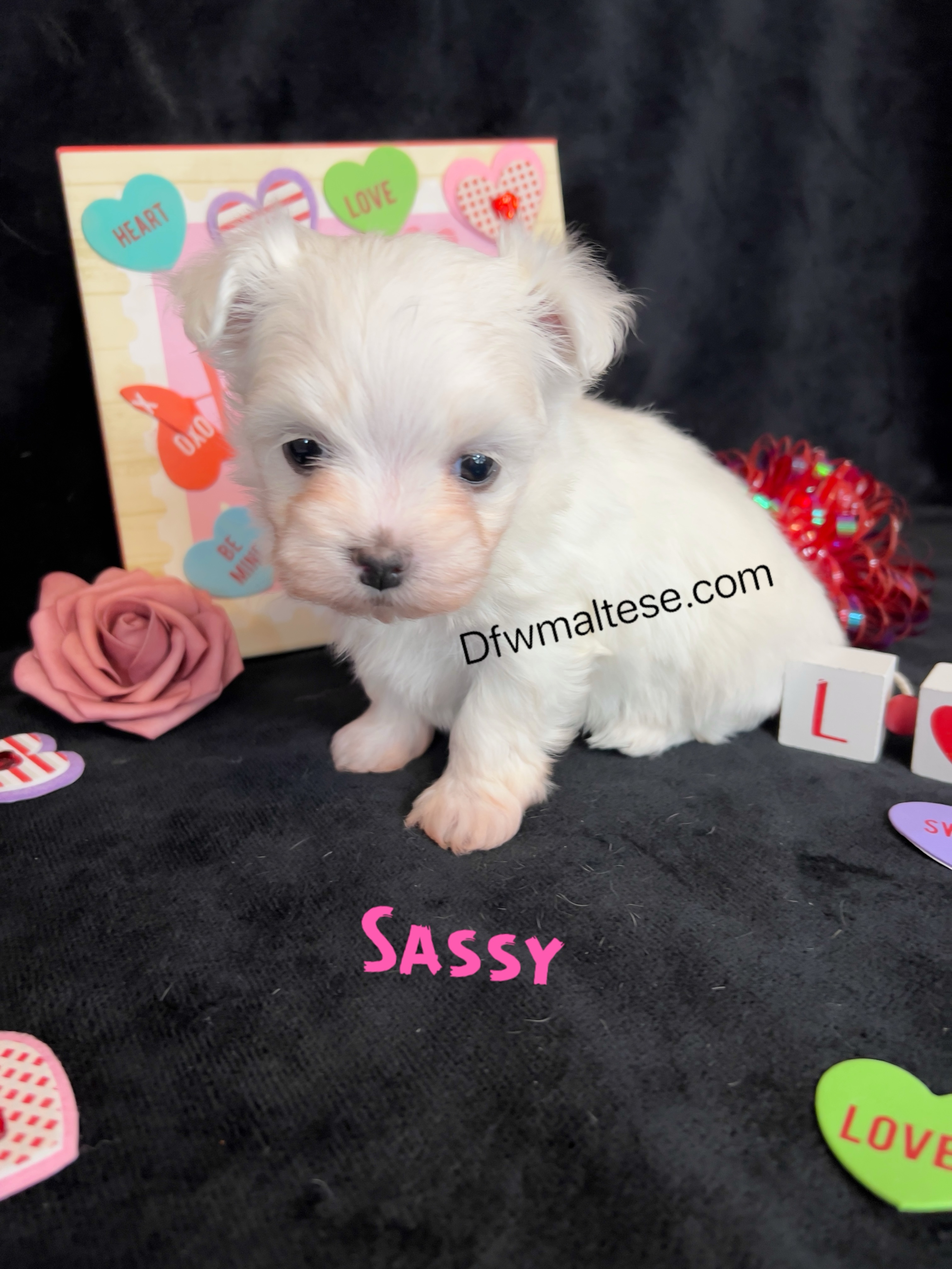 Sold Paige female Maltese, ACA registered , born 11-29-25. She is a cutie pie, charting to be around 3lbs 13 0z to 4lbs grown. Ready to go