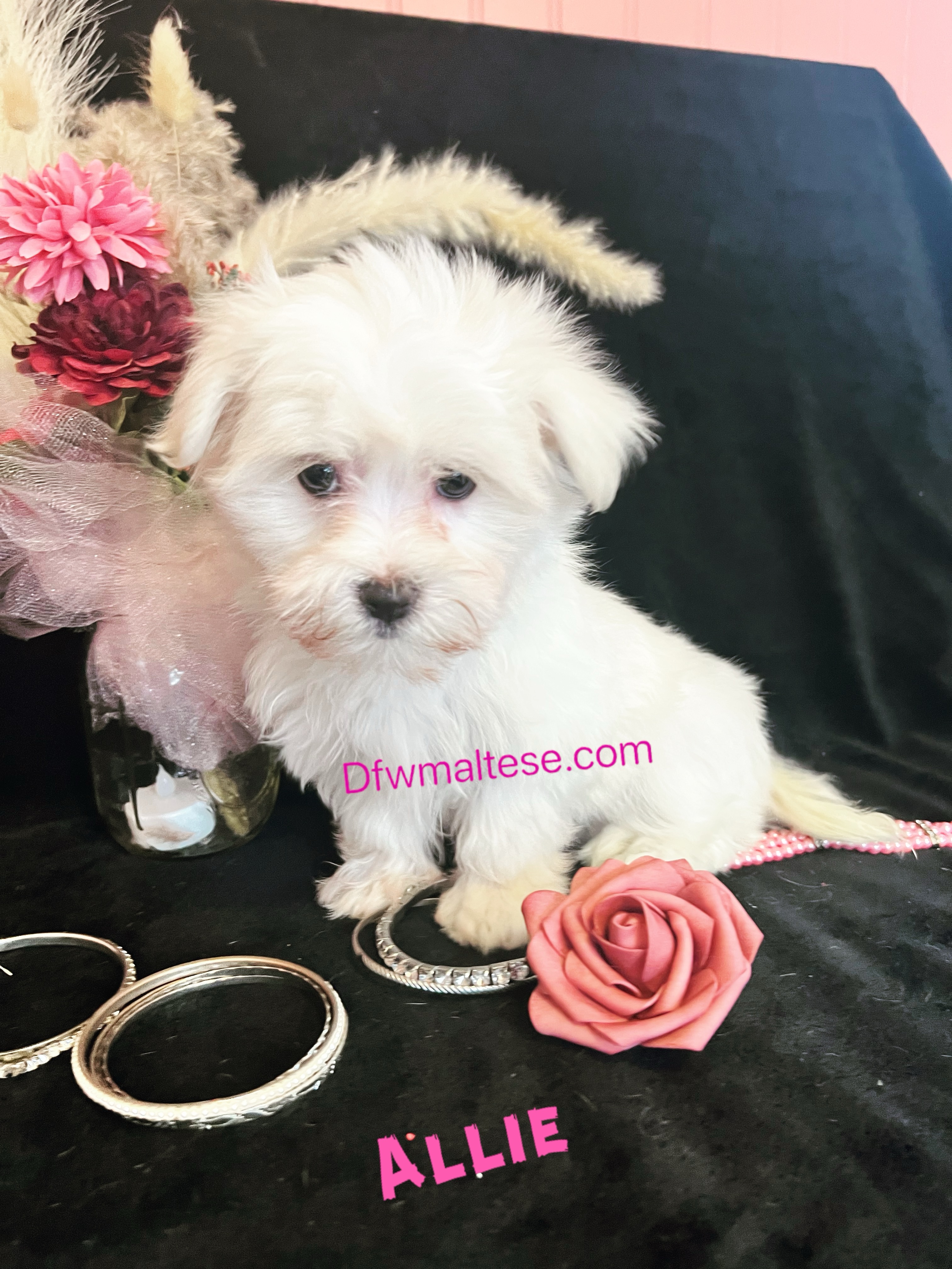 Alli female Maltese, ACA registered , born 11-15-25. She is a cutie pie, charting to be around 5-5.5lbs grown. Ready to go