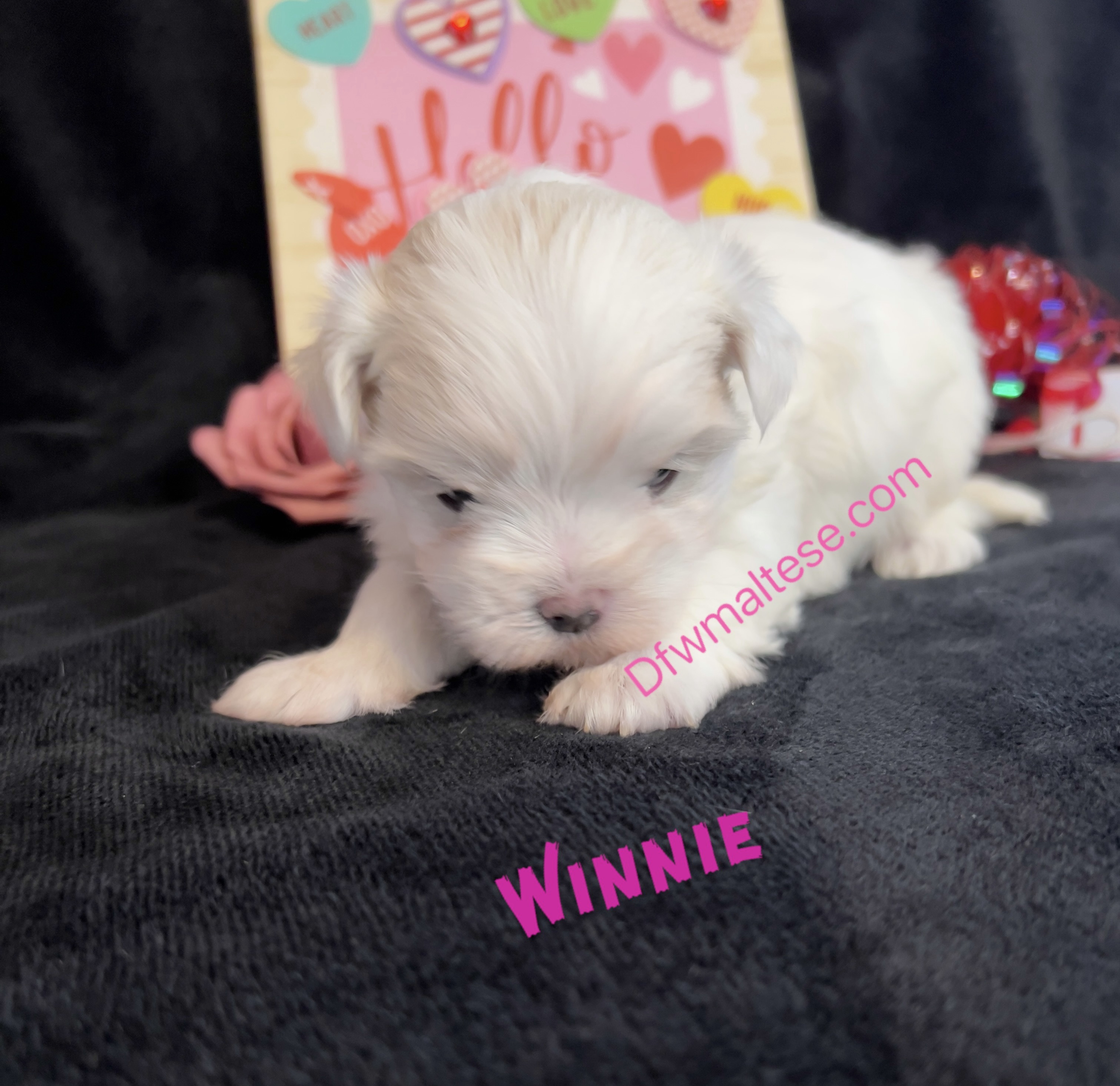 Winnie female maltese, born 12/26/25, ACA registered and such a cutie, Korean bloodline Charting to be around 6.5lbs grown. Ready to go 2-20-26