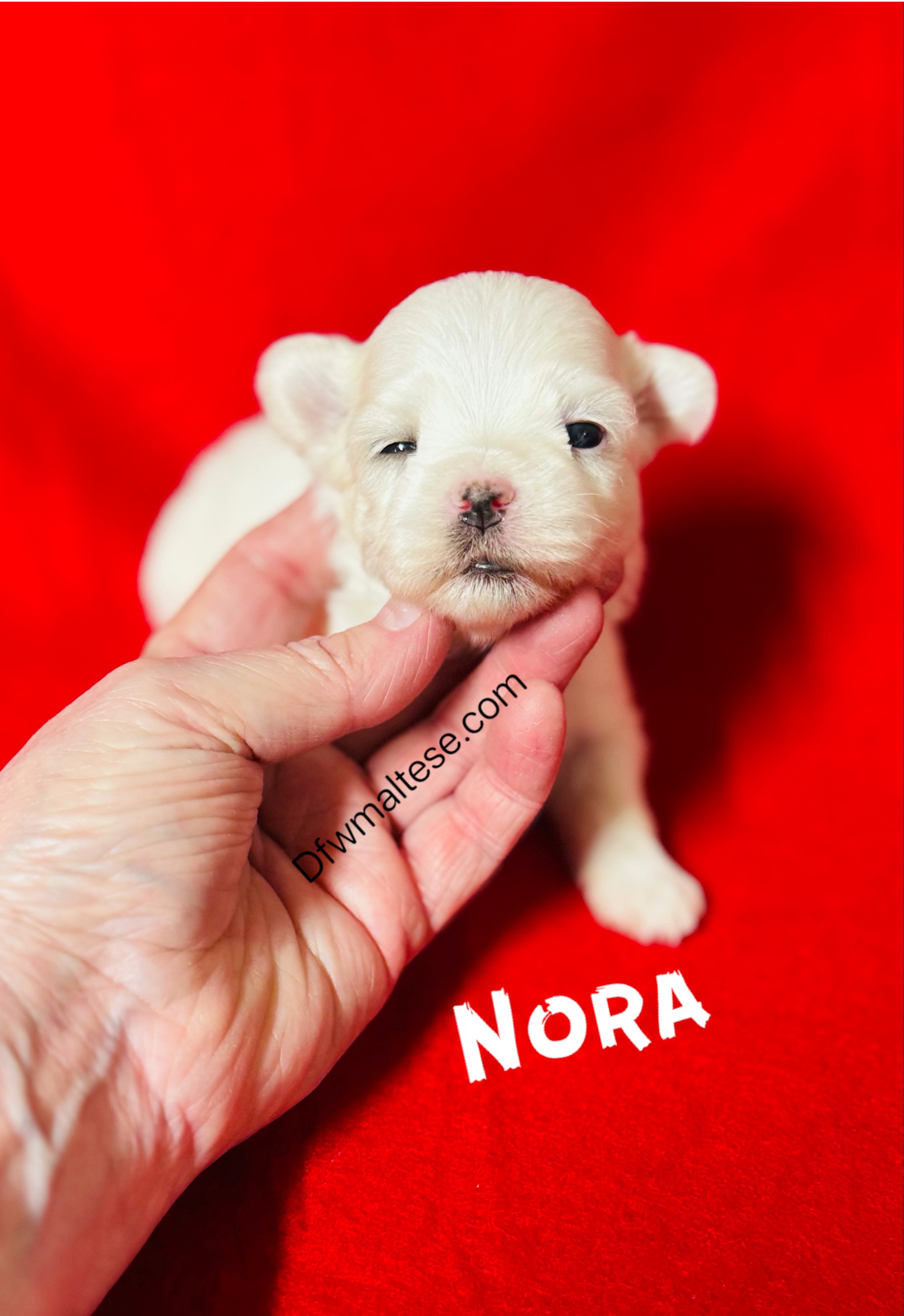 Nora female Maltese, born 1/10/2026, ACA registered and charting to be around 6-7lbs grown, cuddle buddy sweet girl. Ready to go March 7th