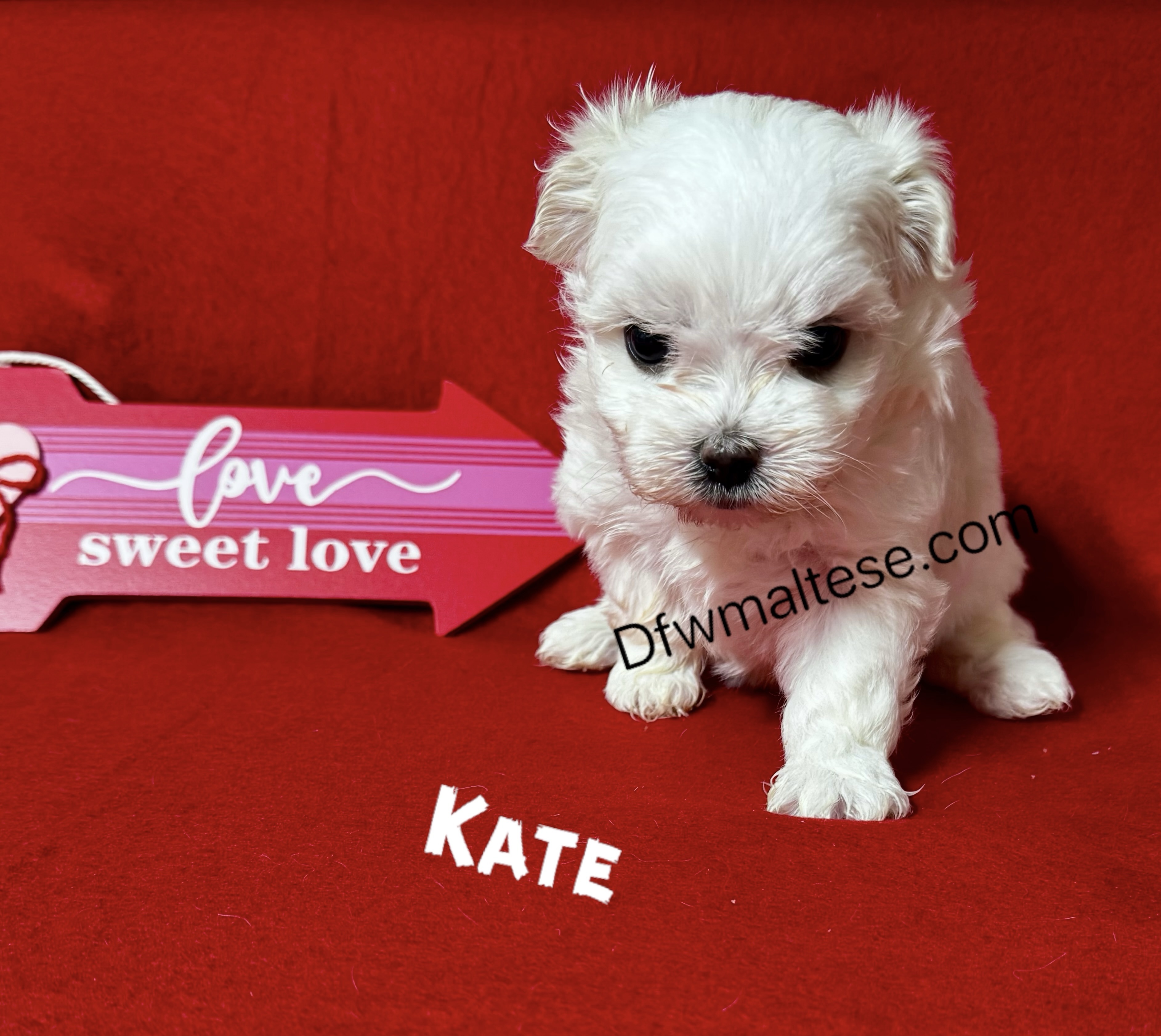 Kate female maltese, born 1-10-2026. ACA registered and charting to be around 6-7lbs grown. She is a cutie starting to play. Ready to go 3/7/2026