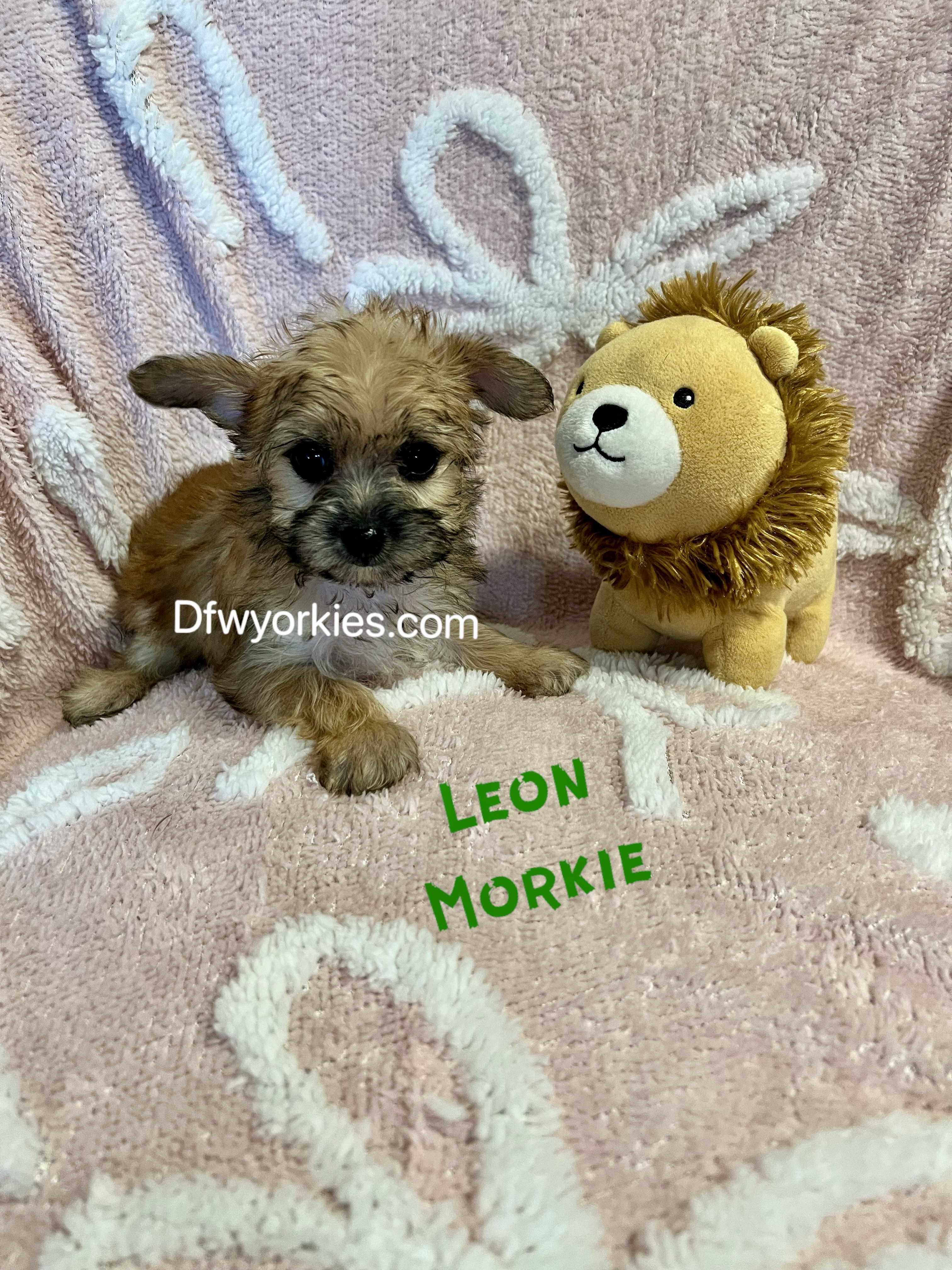 Leon Morkie sable male with beautiful color. Born 2/24/2026, Charting to be around 4 to 4.5lbs grown. Ready to go 4/25/2026