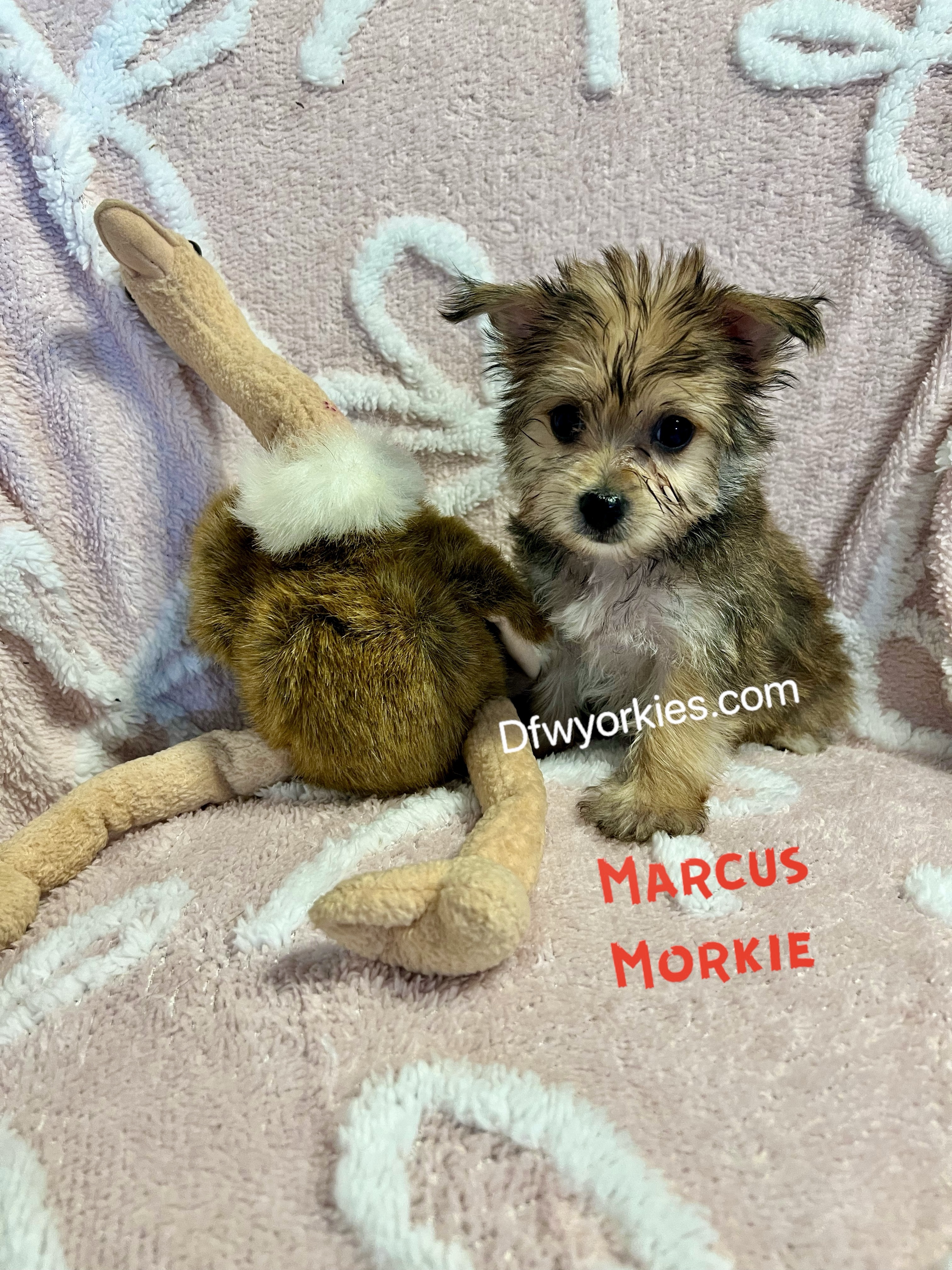 Marcus Morkie sable male with beautiful color. Born 2/24/2026, Charting to be around 5 to 5.5lbs grown. Ready to go 4/25/2026