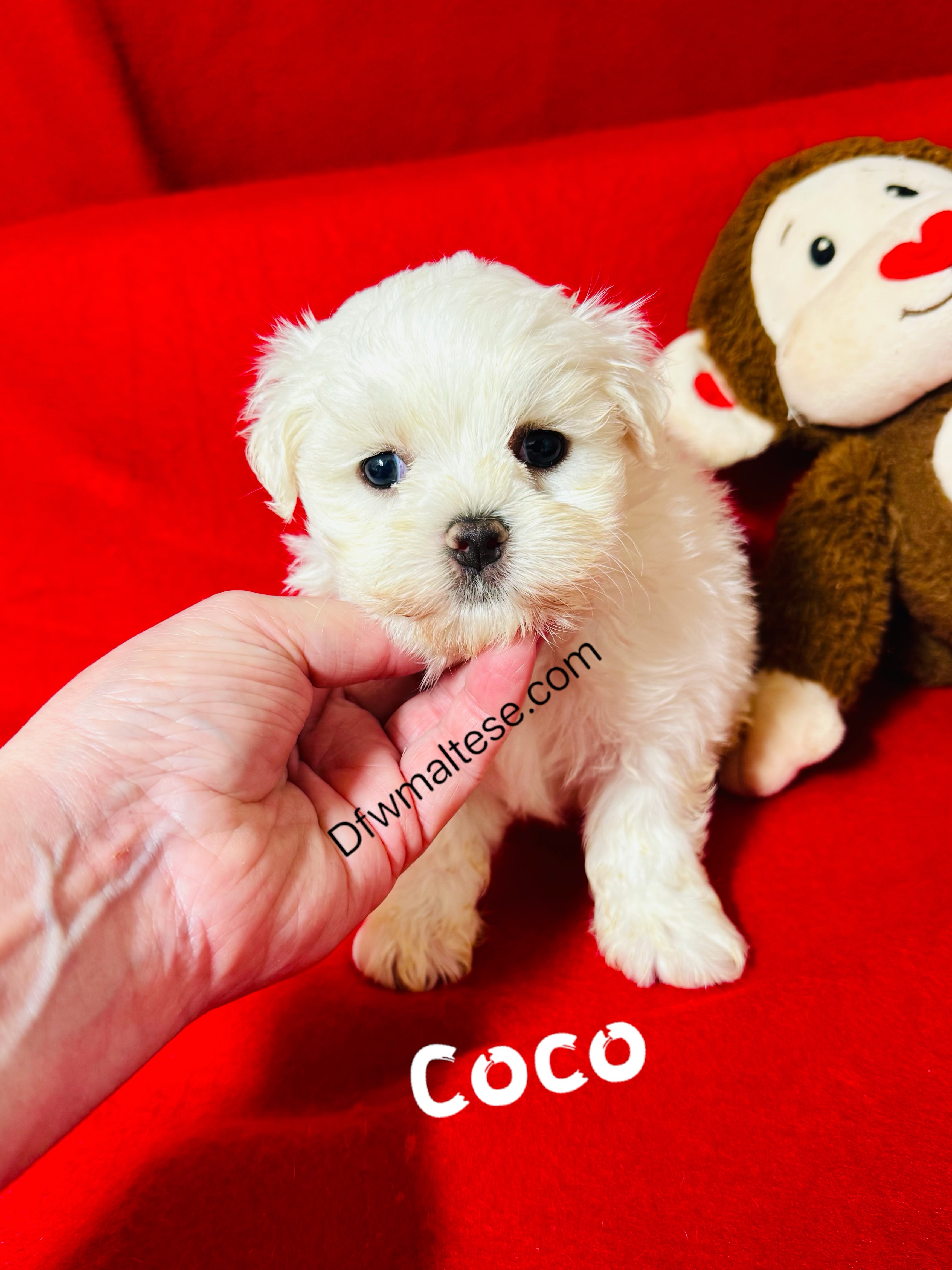 Coco female maltese , born 3/12/2026, ACA registered and charting to be around 6.5lbs grown. Super sweet and playful. Ready to go 5/9/2026