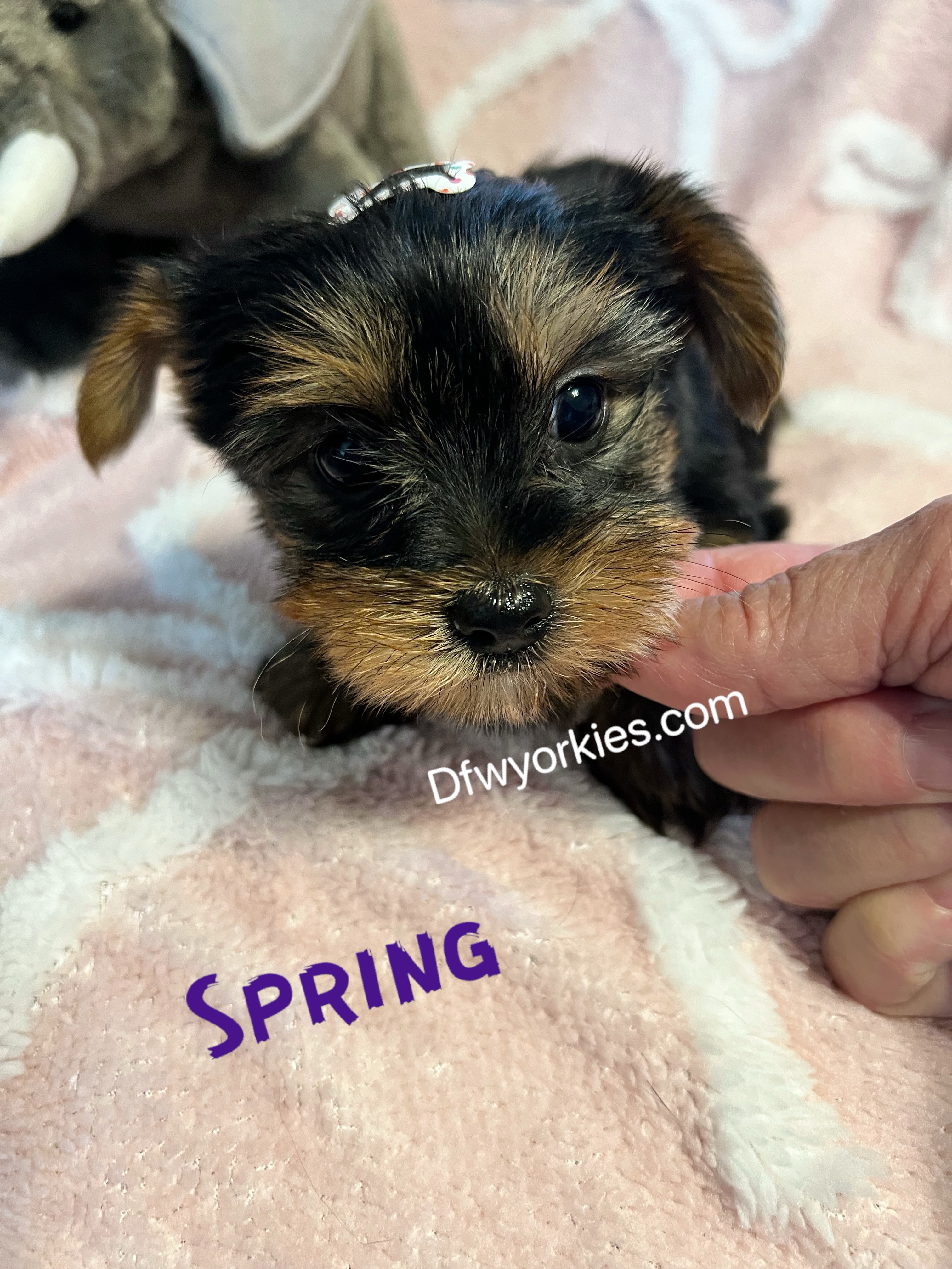 Spring Yorkie female Traditional. Born 3/4/2026, ACA registered and charting to be around 6lbs grown. Ready to go 5/8/2026